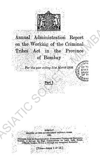 Report on the Working of the Criminal Tribes Act in the Bombay Presidency Part-I,For the Year Ending March 31St,1938
