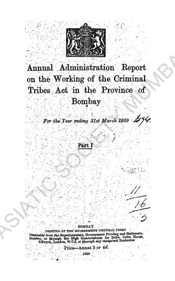 Annual Administration Report on the Working of the Criminal Tribes Act in the Province of Bombay for the Year 31st March 1939