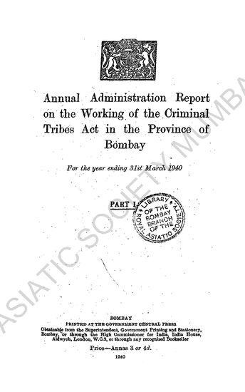 Annual Administration Report on the Working of the Criminal Tribes Act in the Province of Bombay for the Year 31st March 1940
