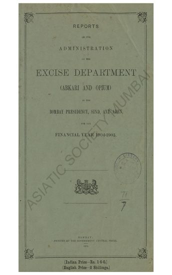 Report on the Administration of Excise Department (Abkari and Opium) in the Bombay Presidency, Sind, and Aden for the Financial Year 1904-1905