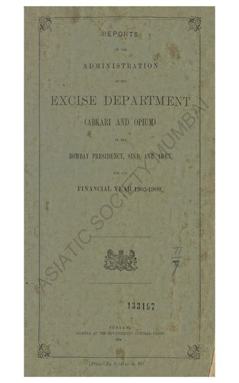 Report on the Administration of Excise Department (Abkari and Opium) in the Bombay Presidency, Sind, and Aden for the Financial Year 1905-1906