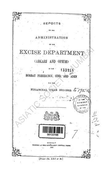 Report on the Administration of the Excise Department (Abkari and Optium) in the Bombay Presidency, Sind, and Aden for the Financial Year 1911-1912