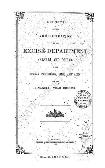 Report on the Administration of the Excise Department (Abkari and Optium) in the Bombay Presidency, Sind, and Aden for the Financial Year 1912-1913