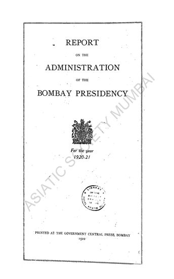 Report on the Administration of the Bombay Presidency for the Year 1920-1921