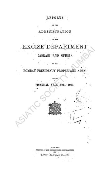 Report on the Administration of the Excise Department (Abkari and Optium) in the Bombay Presidency, Sind, and Aden for the Financial Year 1914-1915
