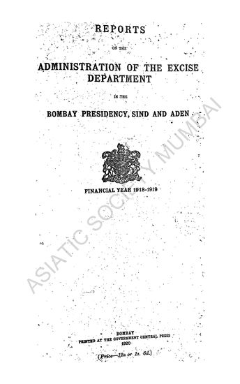 Report on the Administration of the Excise Department in the Bombay Presidency, Sind, and Aden for the Year 1918-1919