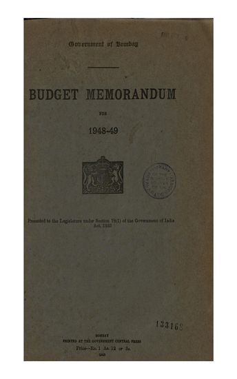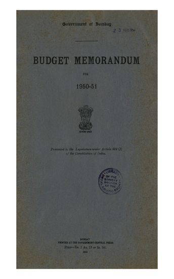 Government of Bombay Civil Budget Estimates for the Yea ...