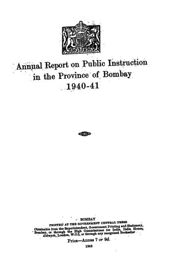 Report on Public Instruction in the Province of Bombay 1940-41 with supplements