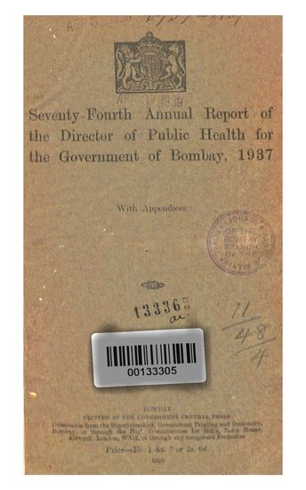 Seventy-Fourth Annual Report of the Director of Public Health for the Government of Bombay, 1937