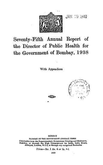 Seventy-Fourth Annual Report of the Director of Public Health for the Government of Bombay, 1938