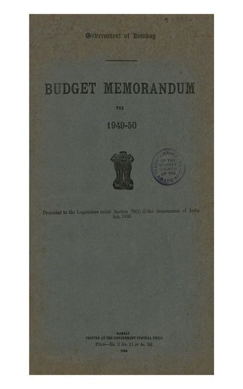 Government of Bombay Budget Memorandum for 1949-50