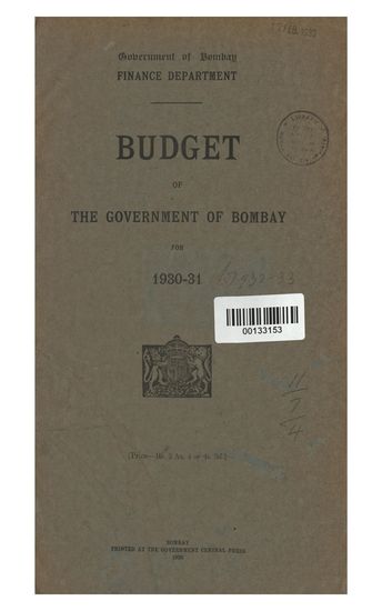 Government of Bombay Finance Department Budget of the Government of Bombay for 1930-31