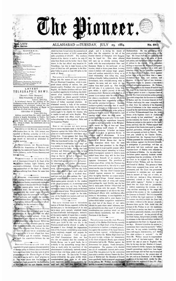 The Pioneer, 29 July 1884