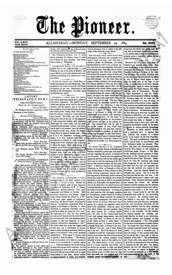 The Pioneer, 29 September 1884