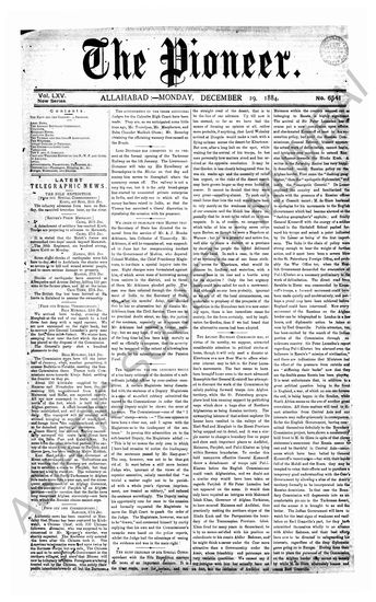 The Pioneer, 29 December 1884