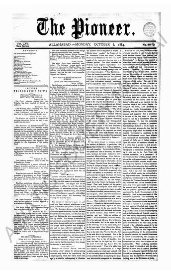 The Pioneer, 6 October 1884