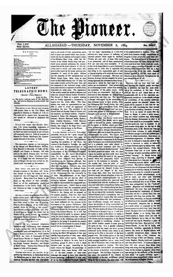 The Pioneer, 6 November 1884