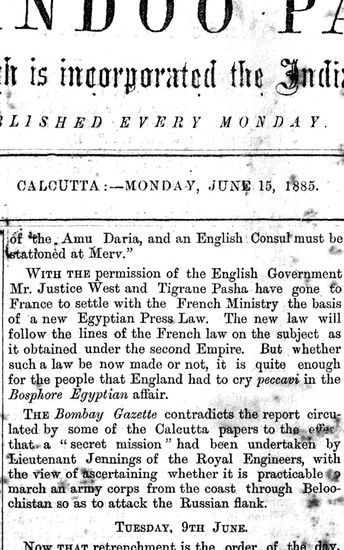 The Hindoo Patriot, 15 June 1885