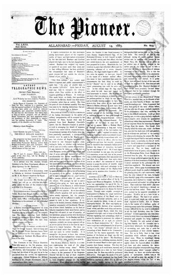 The Pioneer, 14 August 1885