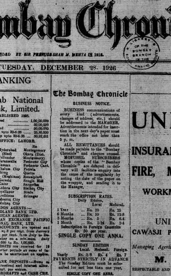 The Bombay Chronicle, 28 December 1926