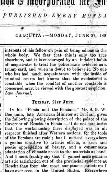 The Bombay Gazette, 27 June 1887