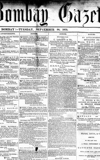 The Bombay Gazette, 30 September 1873