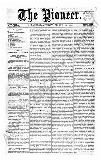 The Pioneer, 18 March 1892