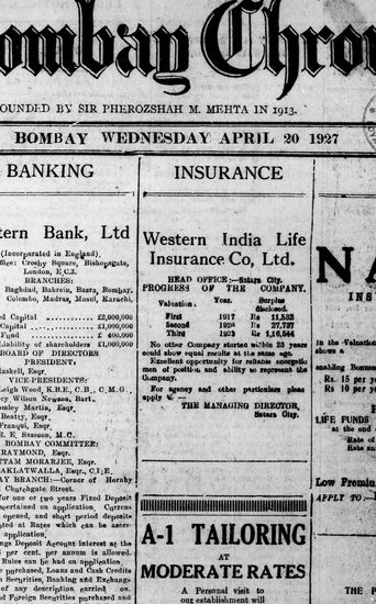 The Bombay Chronicle, 20 April 1927