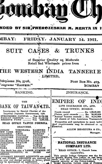 The Bombay Chronicle, 14 January 1921