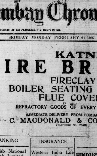 The Bombay Chronicle, 21 February 1927