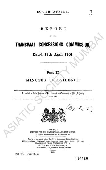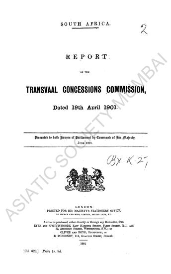 Report of the Transvaal Concessions Commission, dated 1 ...