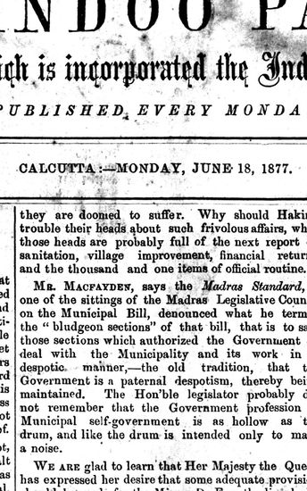 The Hindoo Patriot, 18 June 1877