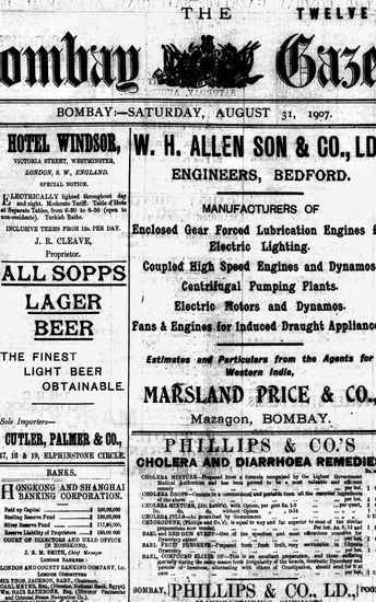 The Bombay Gazette, 31 August 1907