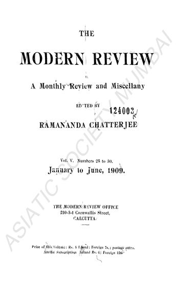 Modern Review a Monthly Review and Miscellany Vol V. Nu ...