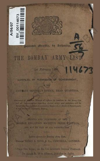 Bombay Army List 1st February 1890, compiled by permiss ...