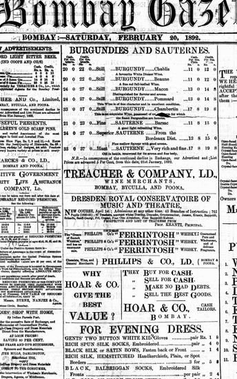 The Bombay Gazette, 20 February 1892