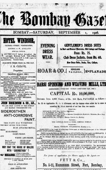 The Bombay Gazette, 1 September 1906