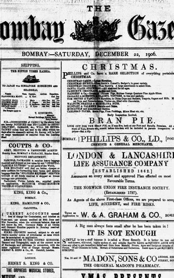 The Bombay Gazette, 22 December 1906