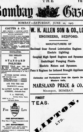 The Bombay Gazette, 22 June 1907