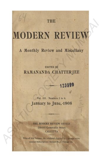 Modern Review a Monthly Review and Miscellany Vol III. ...