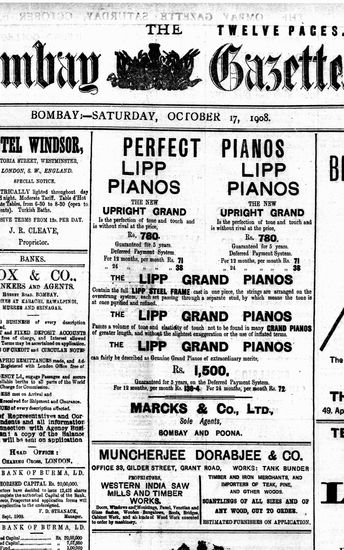 The Bombay Gazette, 17 October 1908