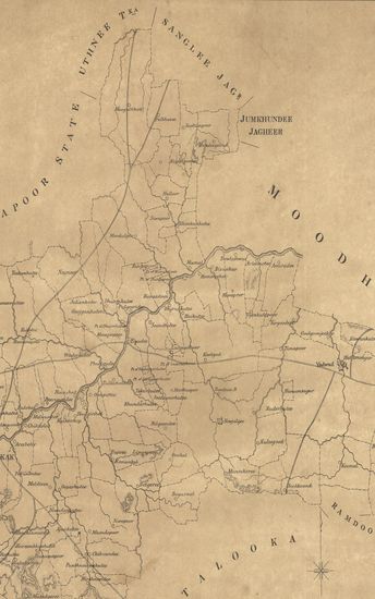 Map of the Madeh (Magha) Taluka of the Sholapur (Solapur) Zilla.