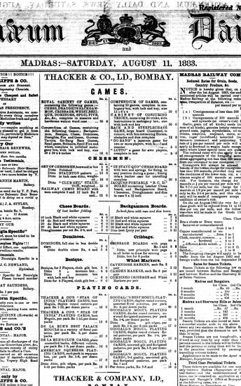 The Bombay Gazette, 11 August 1883