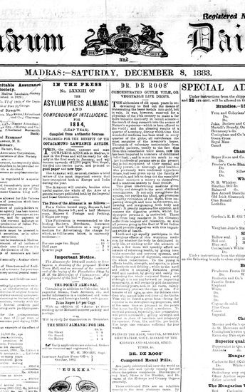 The Bombay Gazette, 8 December 1883