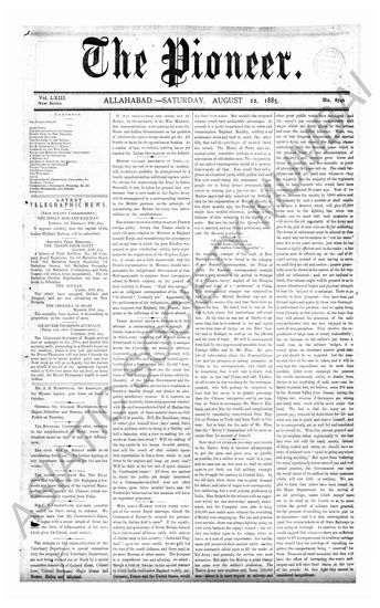 The Pioneer, 22 August 1885