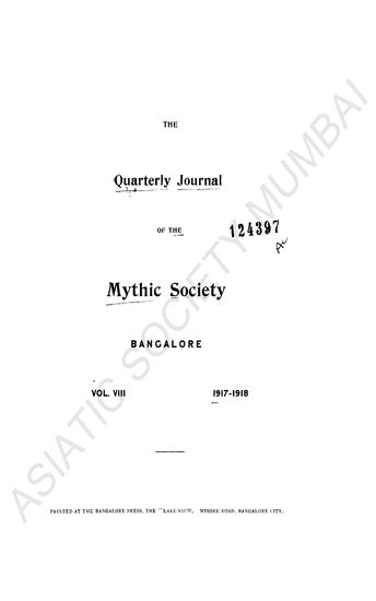 Quarterly Journal of the Mythic Society. Bangalore. Vol ...