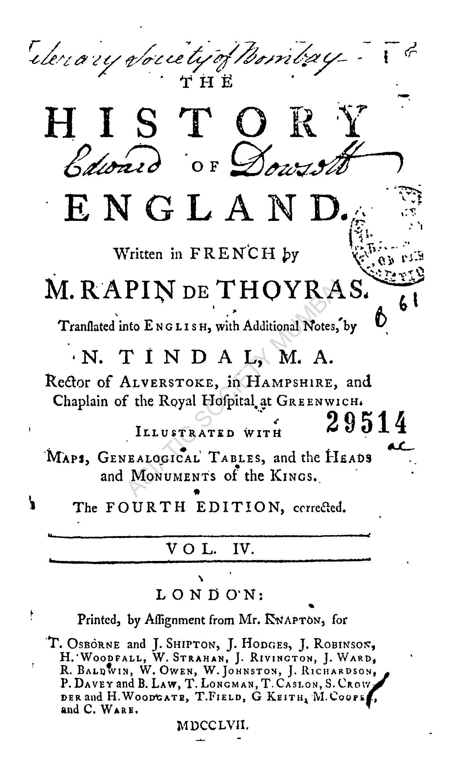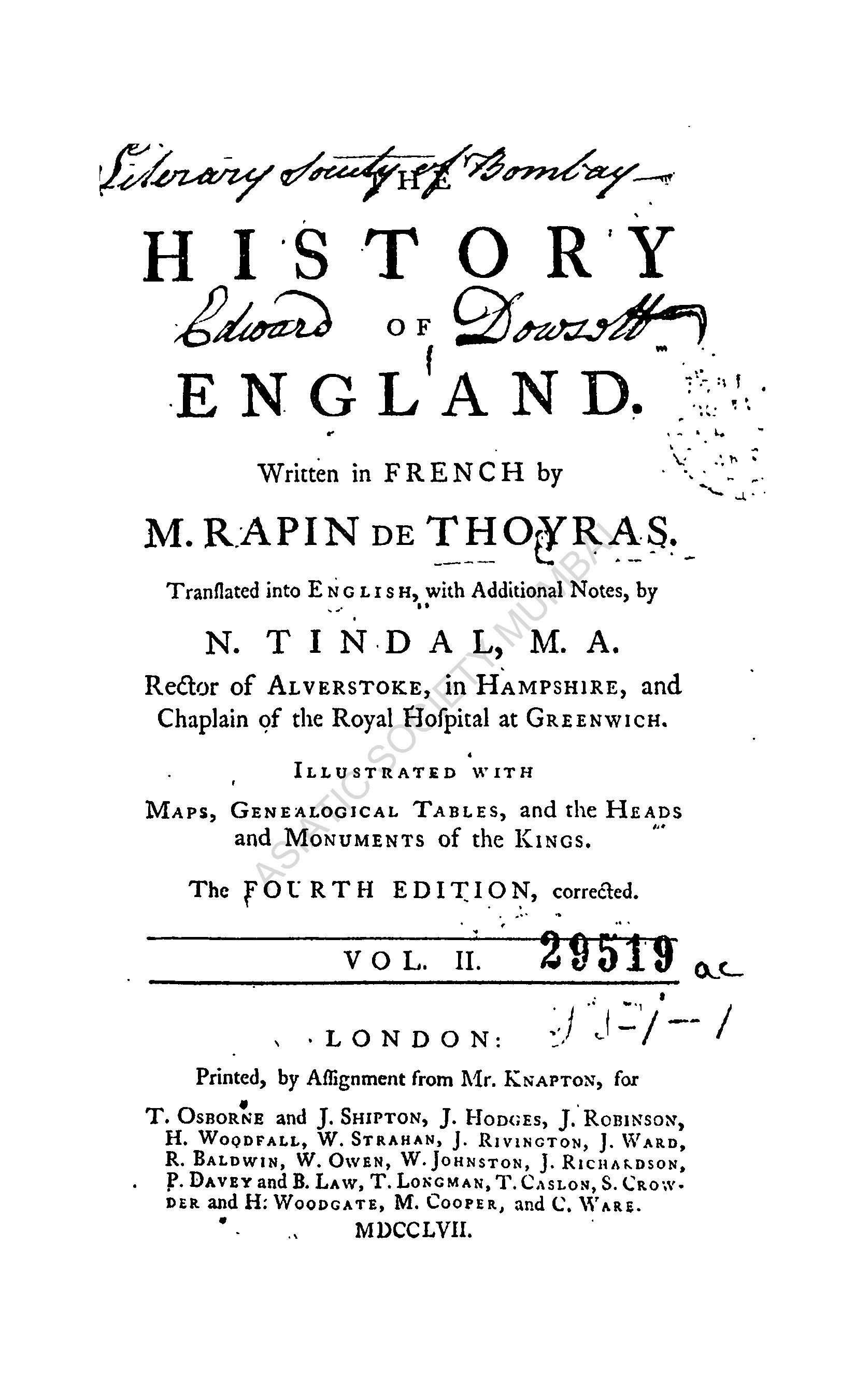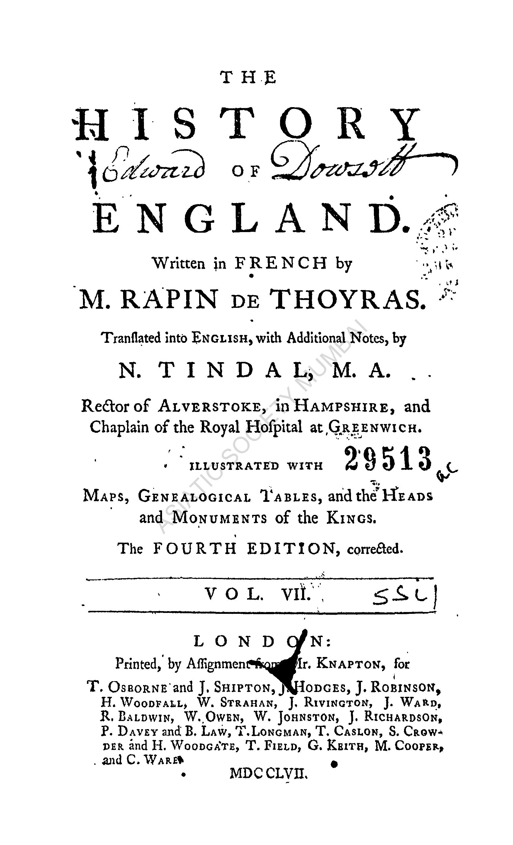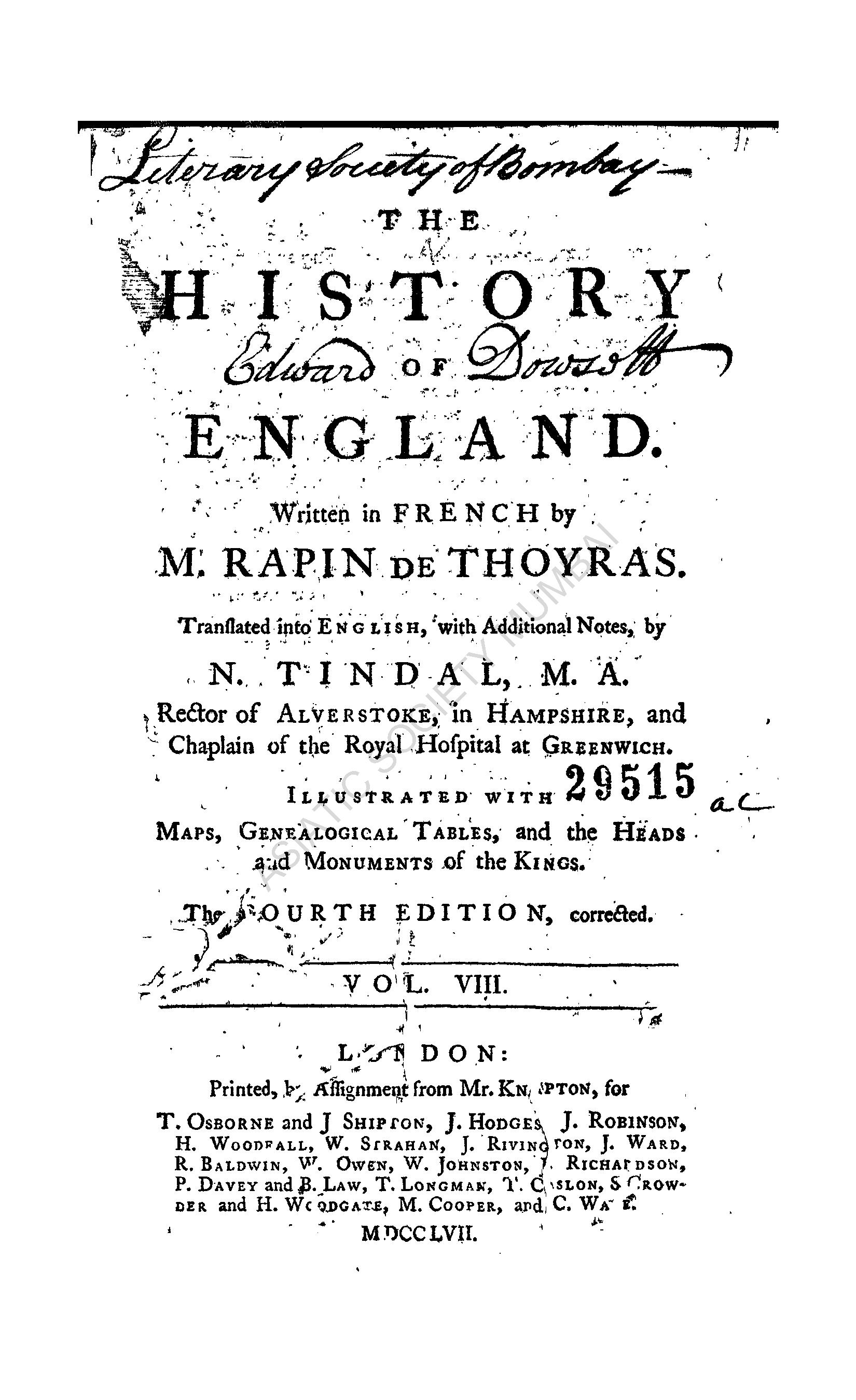| Author | : | Thoyras, M. Rapin de Tindal, N. (Tr.) |