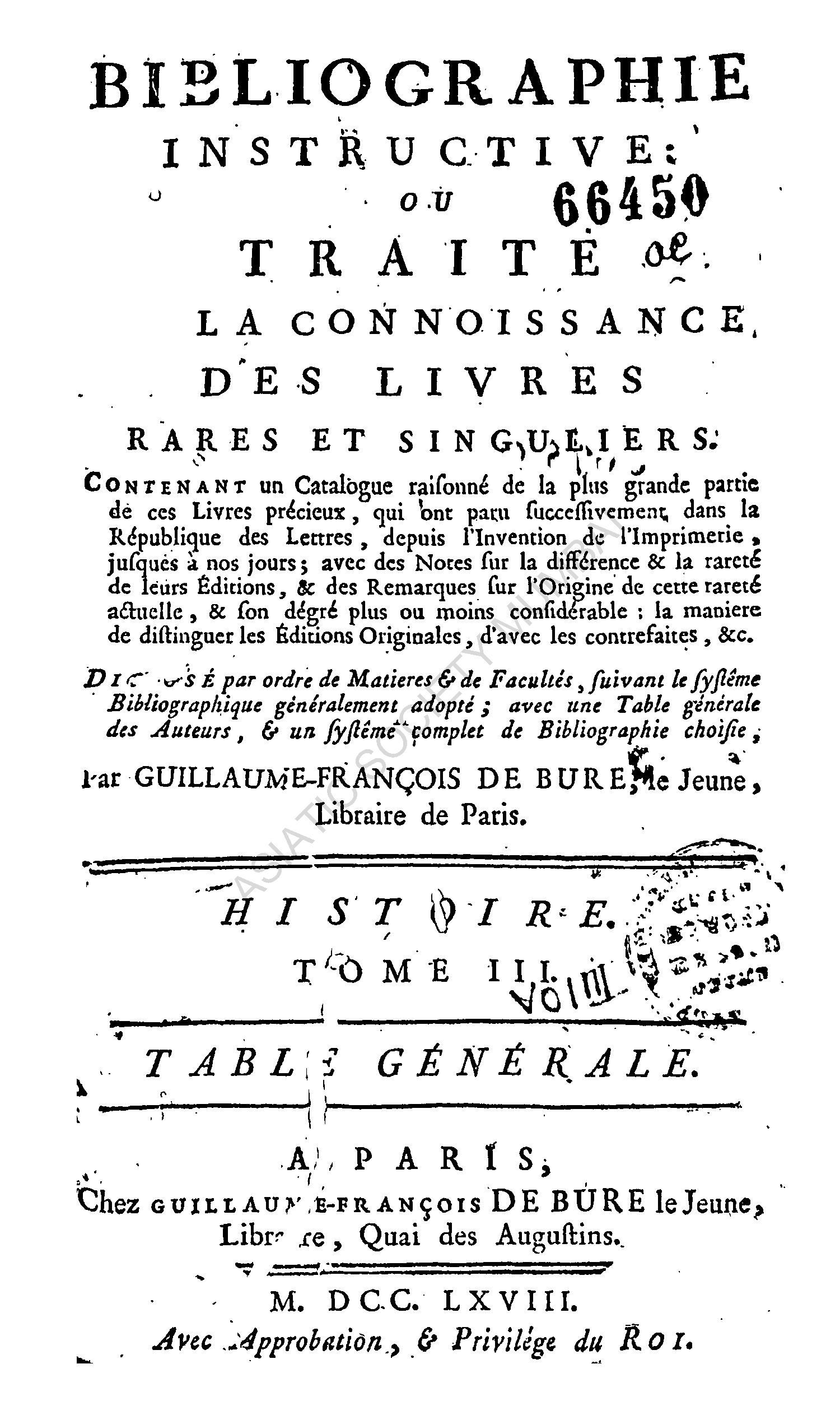 | Publisher | : | Chez Guillaum Francois de Bure |