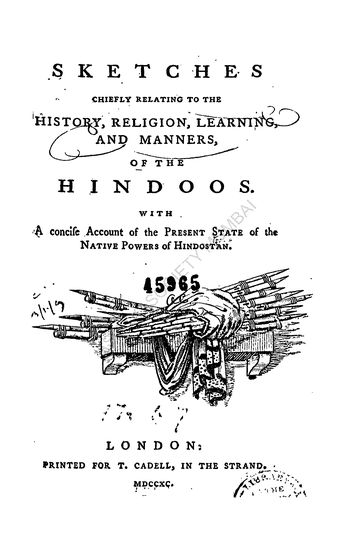 Sketches chiefly relating to the History, Religion, Learing and Manners of the Hindoos with a concise Account of the Present State of the Native Powers of Hindostan