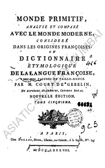 | Author | : | Gebelin, M. Court de |